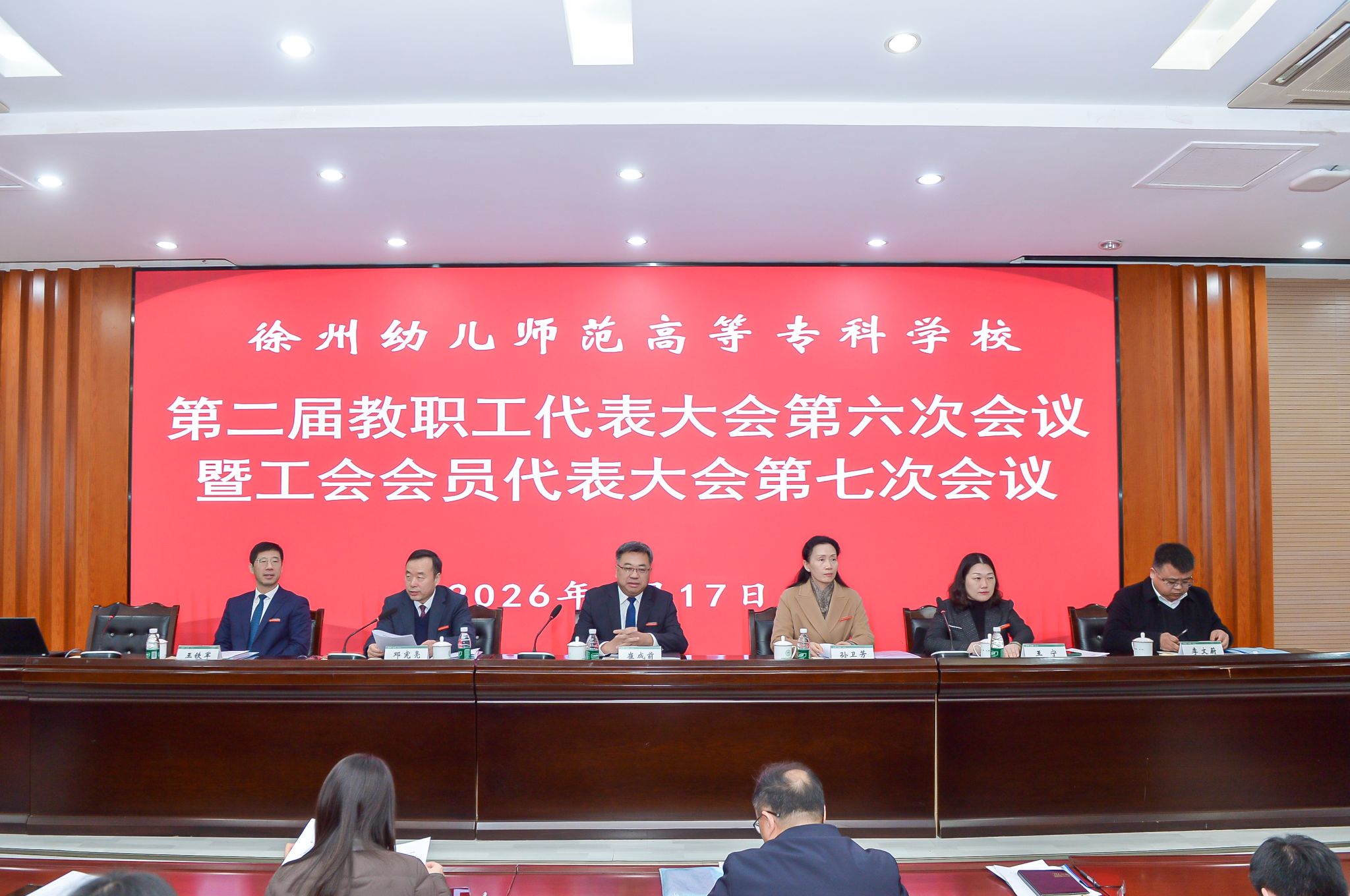 1月17日上午,我校第二届教职工代表大会第六次会议暨工会会员代表大会第七次会议在碧螺校区知行楼学术报告厅召开。校领导班子全体成员出席会议,全体正式代表参加会议。会议由校党委委员、副校长邓宪亮主持。